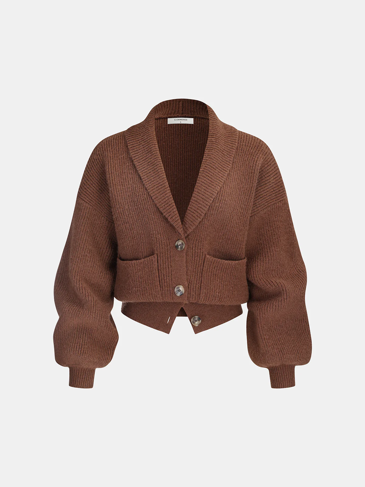 Ribbed Knit Cropped Shawl Collar Cardigan